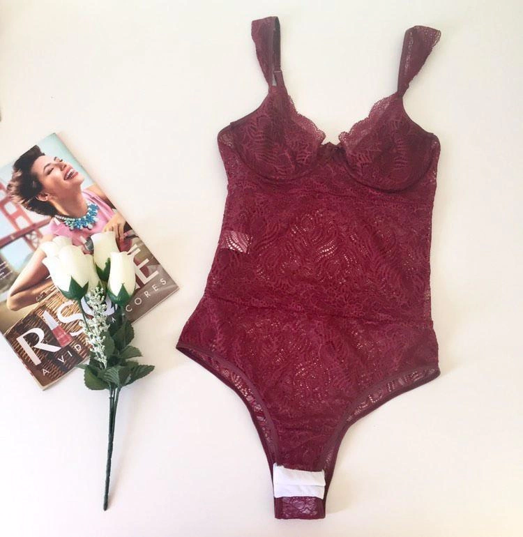 Body sem bojo, com aro, alcinha de renda, fecho embaixo.